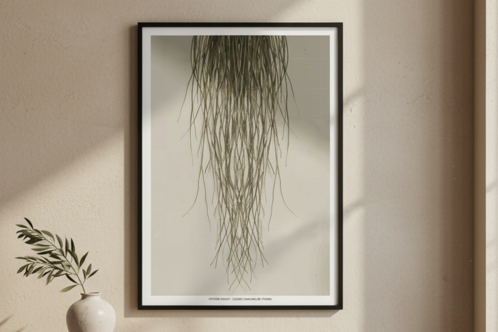 Vetiver Study – Digital Fine Art Perfume Print | Minimal Botanical Wall Art | Earthy Neutral Decor